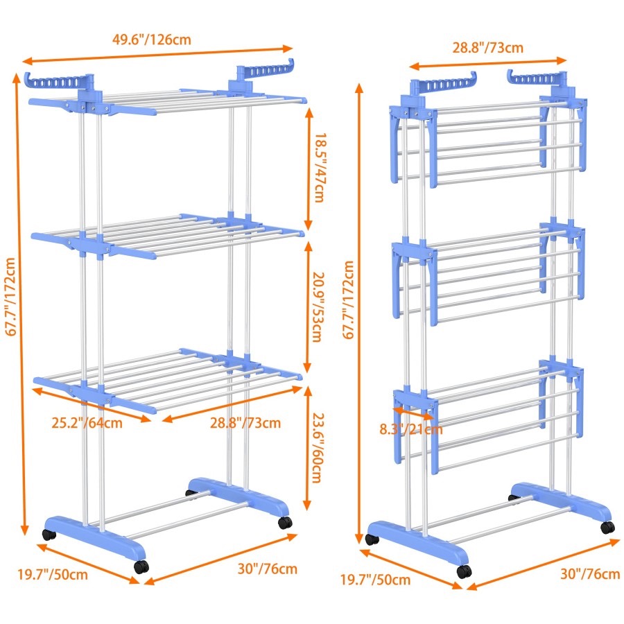 Με πολλά επίπεδα και σταθερές ράβδους ανάρτησης, μπορείτε να στεγνώσετε τα πάντα, από μπλουζάκια και τζιν μέχρι κάλτσες και σεντόνια. Υπάρχει ακόμη και ένα κάτω ράφι για το στέγνωμα παπουτσιών ή μικρών αντικειμένων.