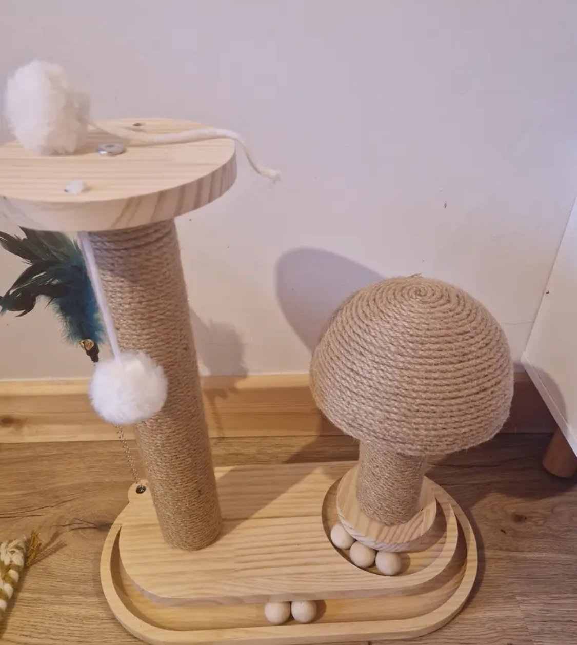 Ο πύργος είναι κατασκευασμένος από πυκνή MDF πλάκα και ανθεκτικό sisal, που εξασφαλίζουν μεγάλη διάρκεια ζωής και ασφαλή χρήση, ακόμα και κατά τη διάρκεια ζωηρών παιχνιδιών.