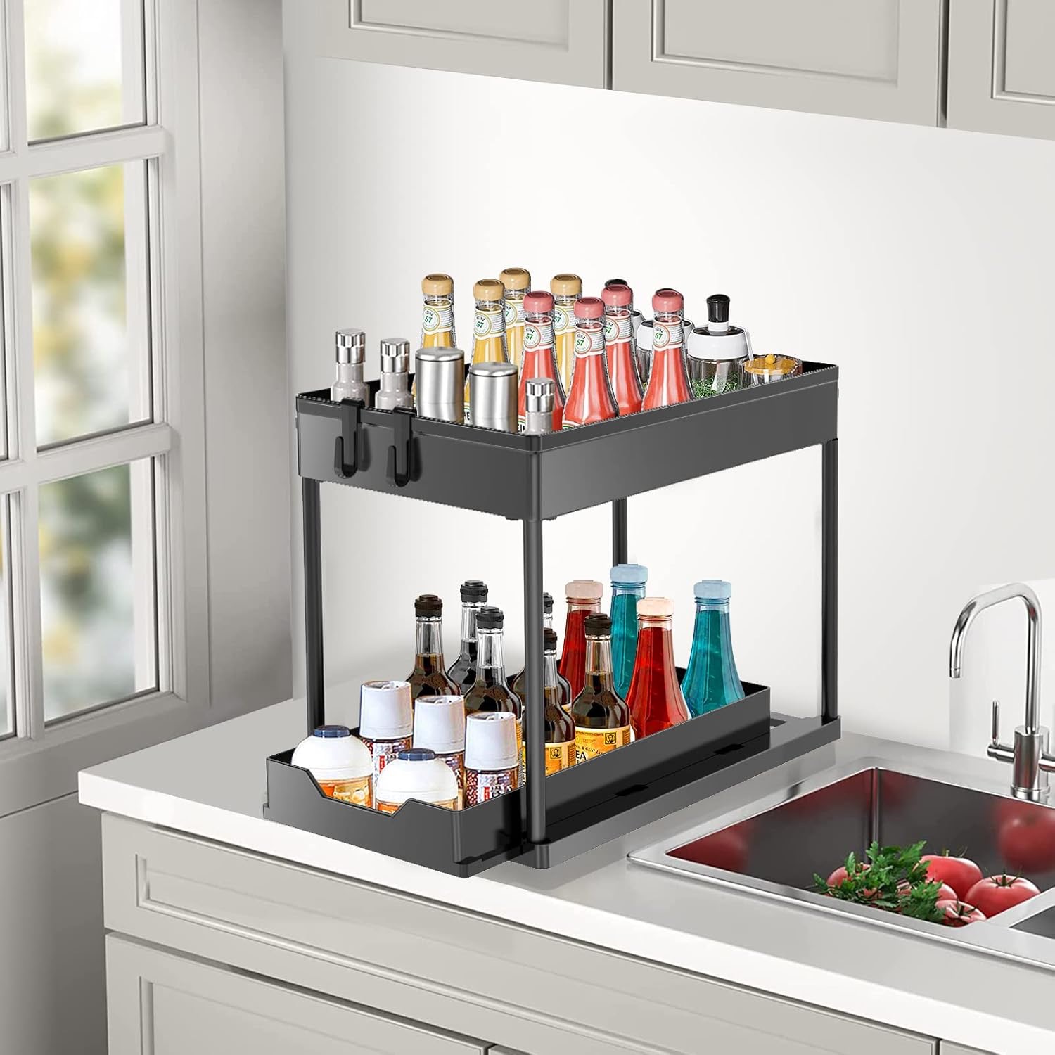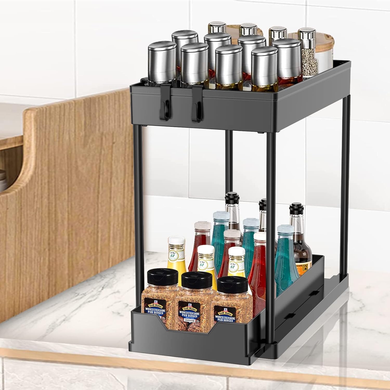 Ο διπλός συρόμενος σχεδιασμός σε δύο επίπεδα σας βοηθά να αξιοποιήσετε πλήρως τον κάθετο χώρο σε ντουλάπια ή ντουλάπες τροφίμων, κρατώντας τα πάντα τακτοποιημένα και οργανωμένα.