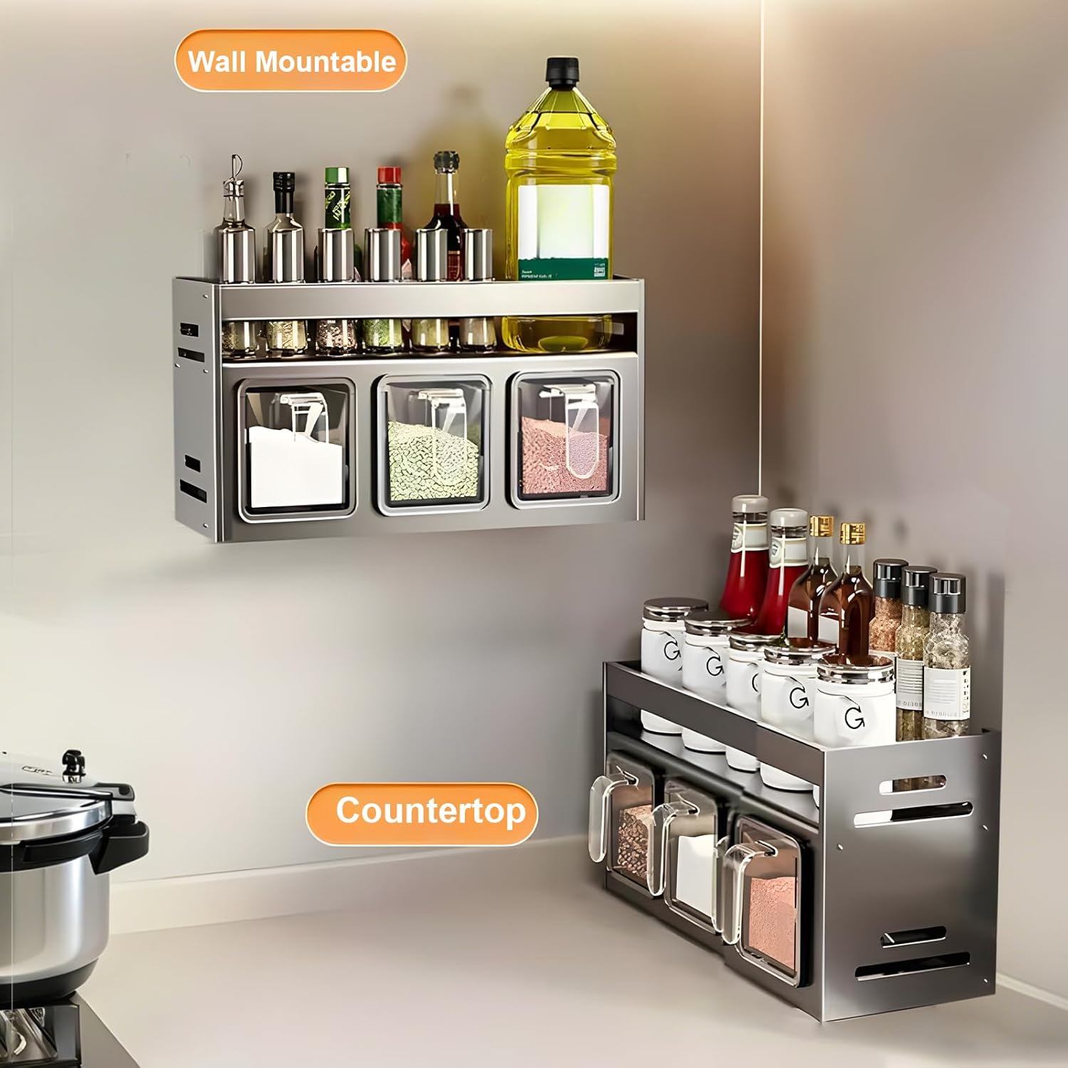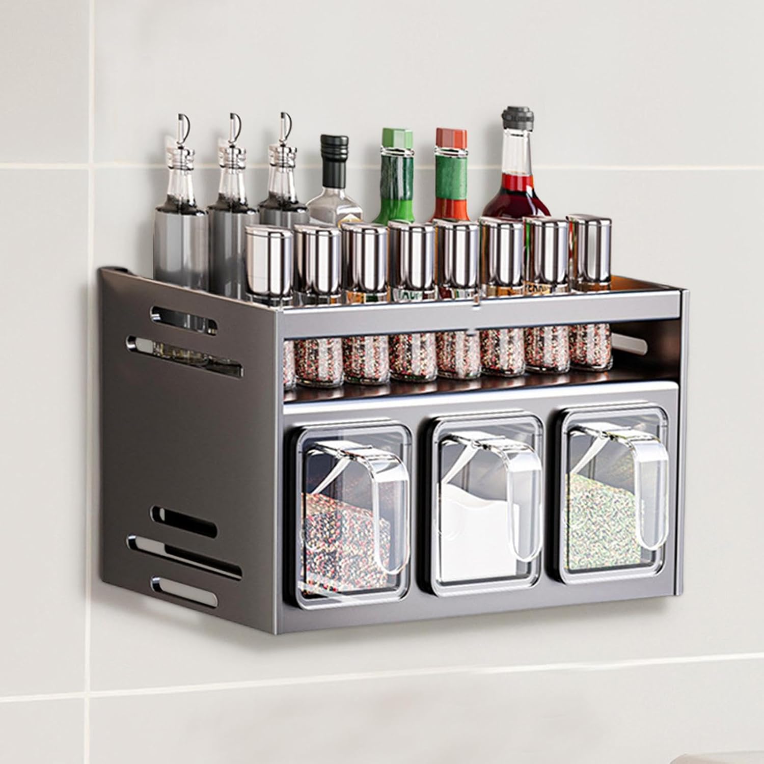 Ο σχεδιασμός με διπλό στρώμα προσφέρει επιπλέον χώρο και τέλεια ορατότητα σε όλα τα μπουκαλάκια και δοχεία σας. Η αποθήκευση γίνεται εύκολα και τα μπαχαρικά βρίσκονται πάντα εύκαιρα, αναβαθμίζοντας τη μαγειρική σας εμπειρία.