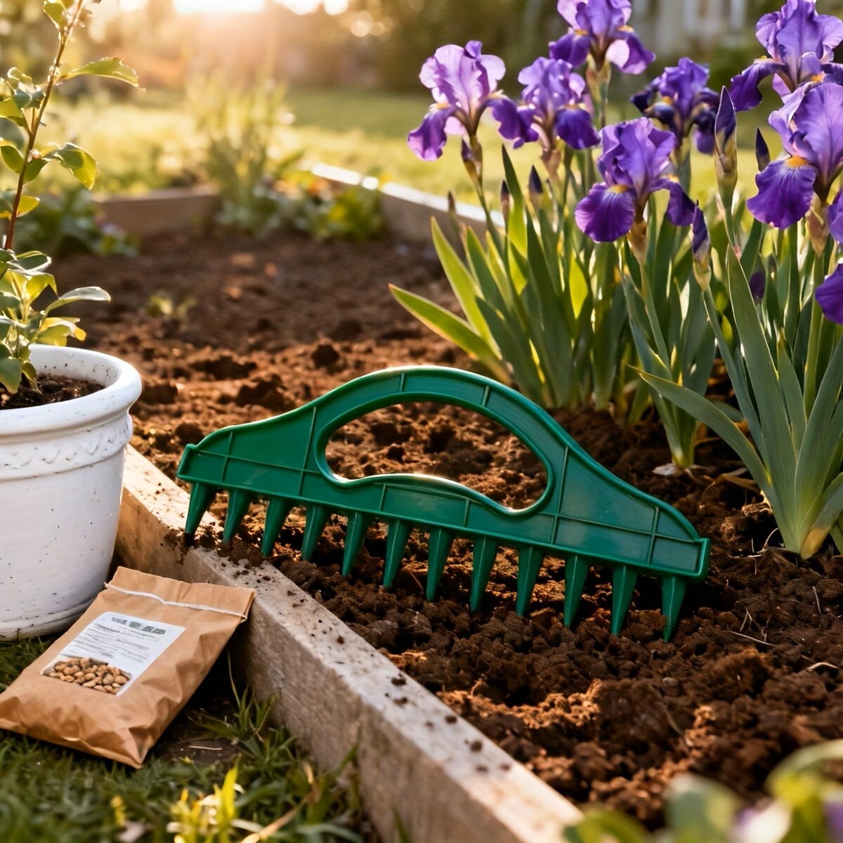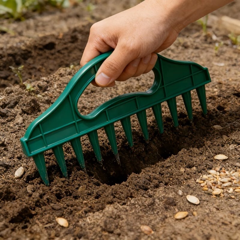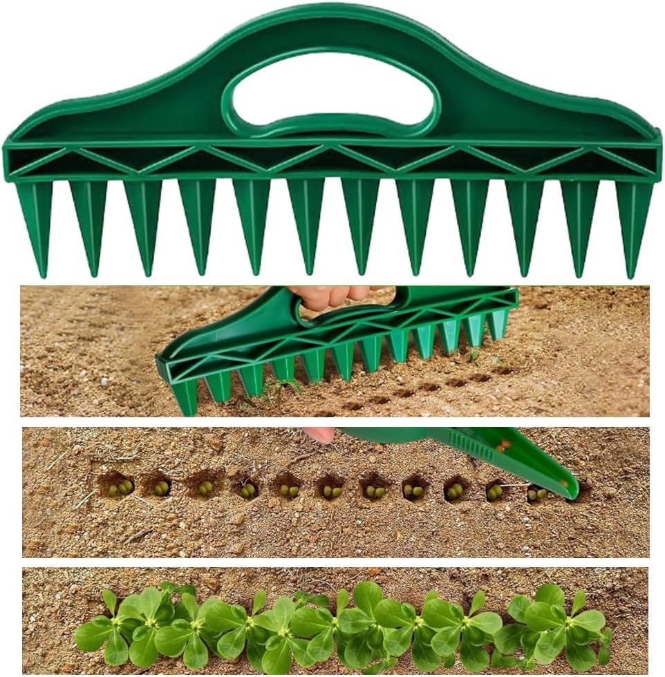 Σχεδιασμένο για ακριβή τοποθέτηση σπόρων και φυτών, αυτό το εργαλείο βοηθά στη δημιουργία καθαρών, ομοιόμορφα κατανεμημένων οπών για σπόρους, φυτάρια και βολβούς σε παρτέρια ή γλάστρες.