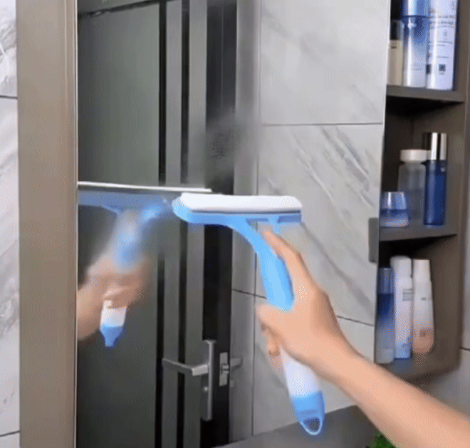 Η λαβή με ψεκαστήρα προσφέρει άνεση στη χρήση και μπορείτε να τη γεμίσετε με νερό ή το αγαπημένο σας καθαριστικό. Χάρη στις ενσωματωμένες τρύπες για κρέμασμα, το εργαλείο αποθηκεύεται εύκολα και πρακτικά.