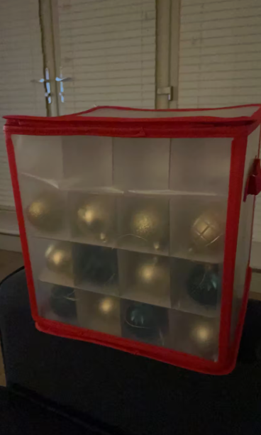 Κατασκευασμένο από αδιάβροχο βινύλιο, αυτό το κουτί προσφέρει μακροχρόνια προστασία για τα στολίδια σας. Το φερμουάρ στο καπάκι εξασφαλίζει ασφαλή και προστατευμένη αποθήκευση, αποτρέποντας την πρόσβαση σκόνης και υγρασίας. Τα χριστουγεννιάτικα σας στολίδια θα παραμείνουν σε άριστη κατάσταση ακόμα και μετά τις γιορτές.