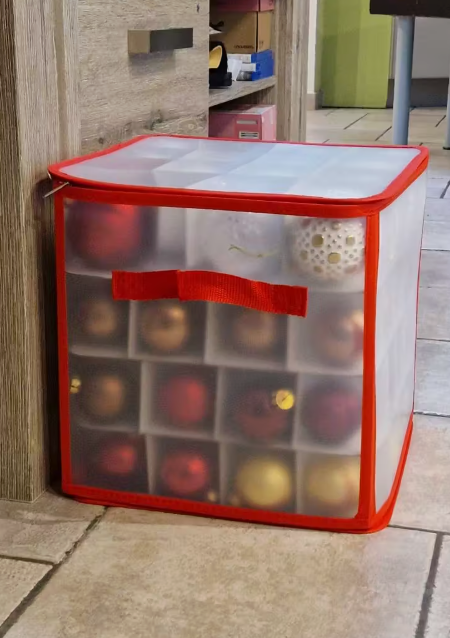Το κουτί αποθήκευσης στολιδιών FESTIBOX έχει σχεδιαστεί με όγκο 30x30x30 εκατοστά και προσφέρει 4 διαμερίσματα για οργανωμένη αποθήκευση έως 64 στολίδια. Ιδανική λύση για την προστασία των χριστουγεννιάτικων σας στολιδιών και τη διατήρηση της τάξης στο σπίτι σας.