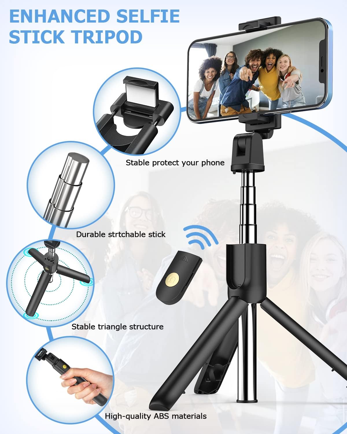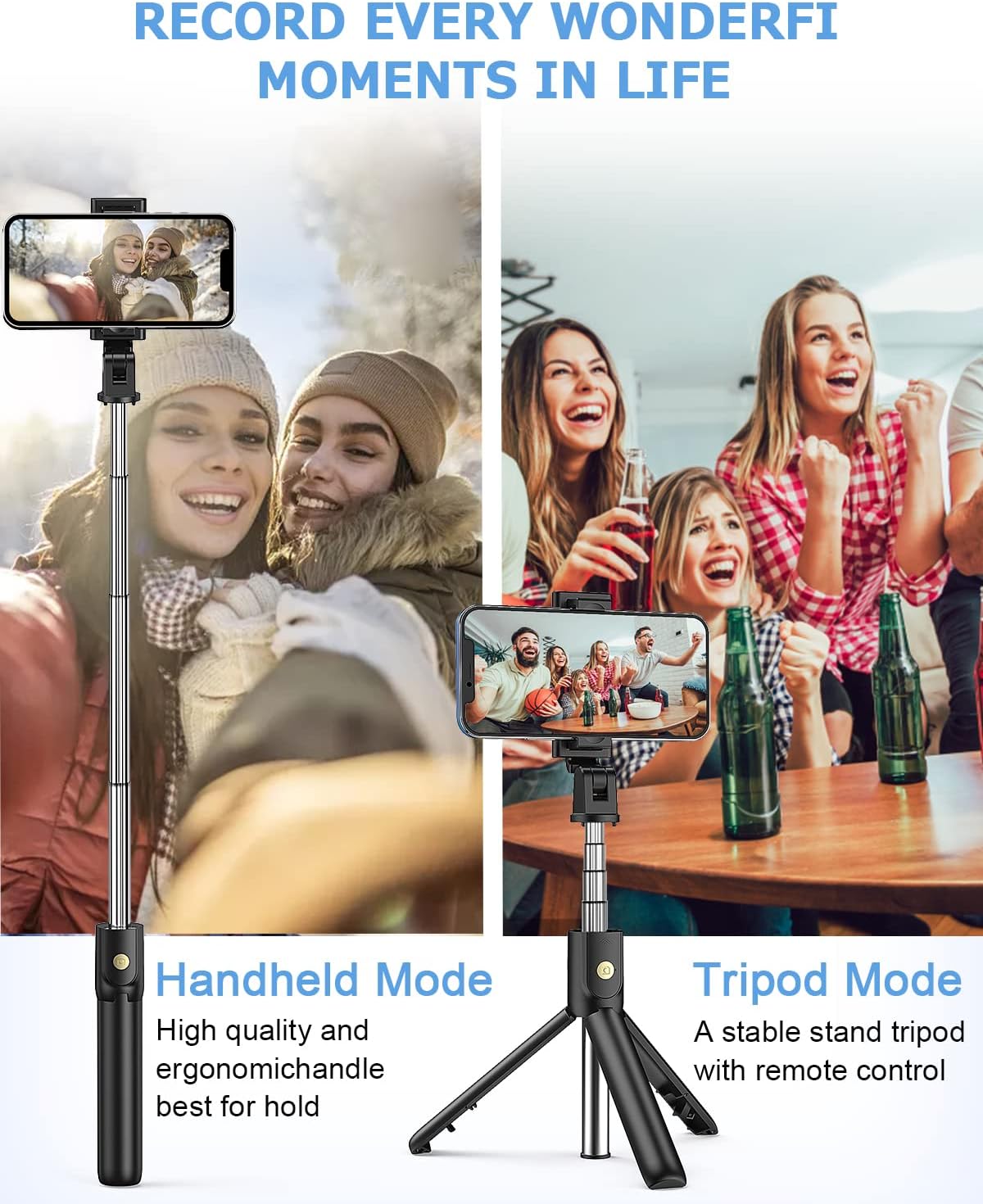 HOOS συνδυάζει selfie stick, τρίποδο και Bluetooth τηλεχειριστήριο σε μία compact συσκευή. Με το πάτημα ενός κουμπιού τραβήξτε τέλειες selfies ή ομαδικές φωτογραφίες – χωρίς βοήθεια από άλλους! Κατάλληλο για οικιακή χρήση, εκδρομές, πάρτι και ακόμη και για τη δημιουργία περιεχομένου για τα κοινωνικά δίκτυα. 🤳✨
