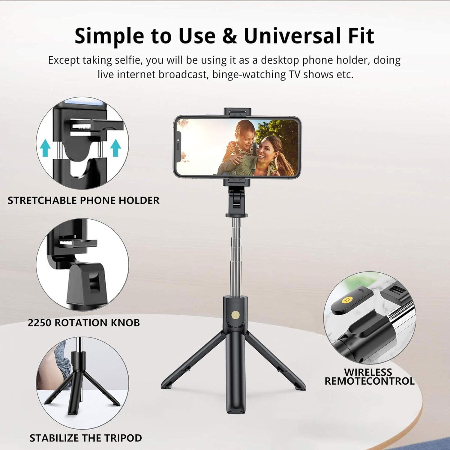 Χάρη στη βάση που περιστρέφεται κατά 270°, μπορείς να τοποθετήσεις το τηλέφωνό σου ακριβώς όπως σε βολεύει – κάθετα ή οριζόντια. Η σταθερή βάση εξασφαλίζει ότι οι φωτογραφίες και τα βίντεό σου είναι πάντα καθαρά και χωρίς τρέμουλο. 📱🎬